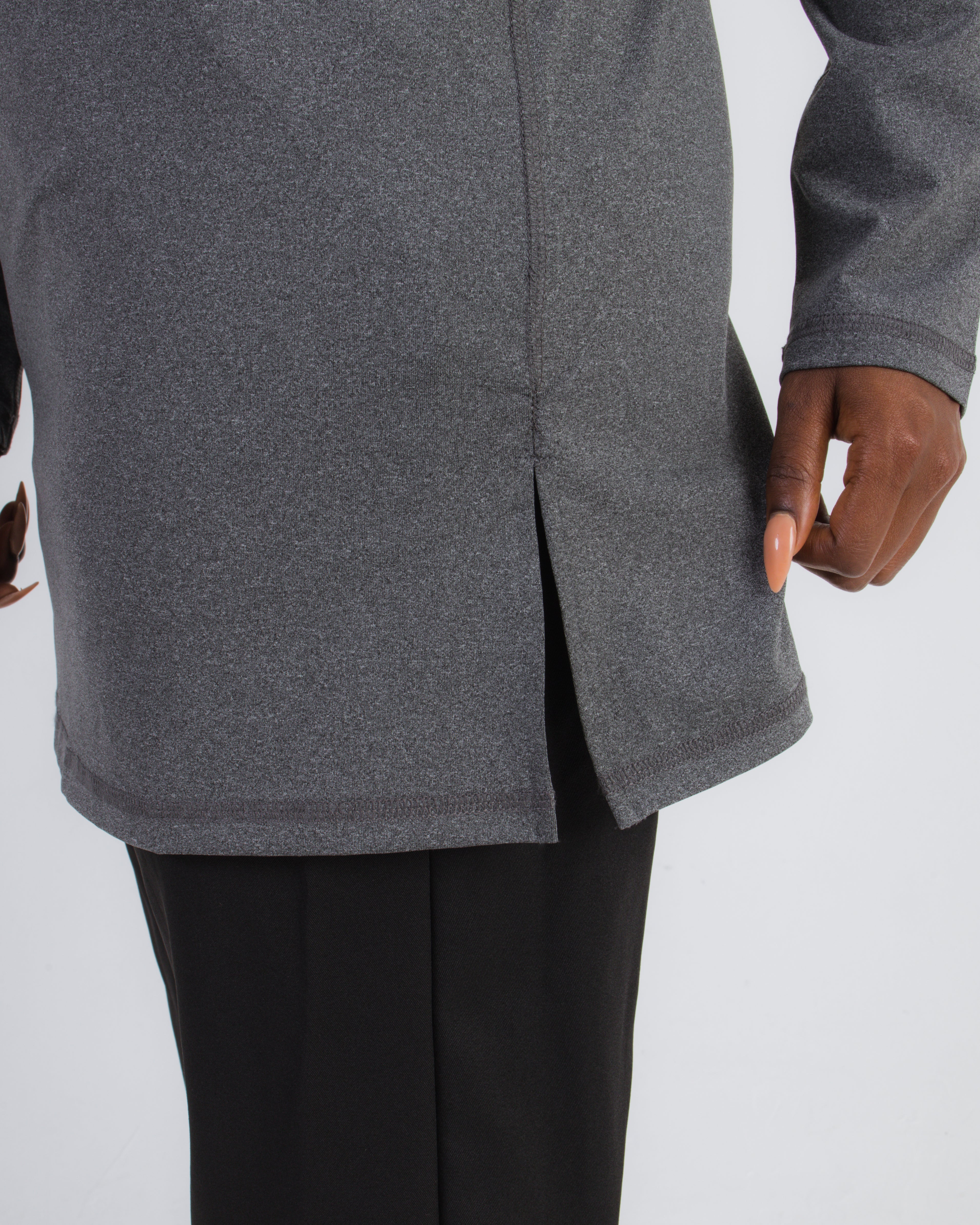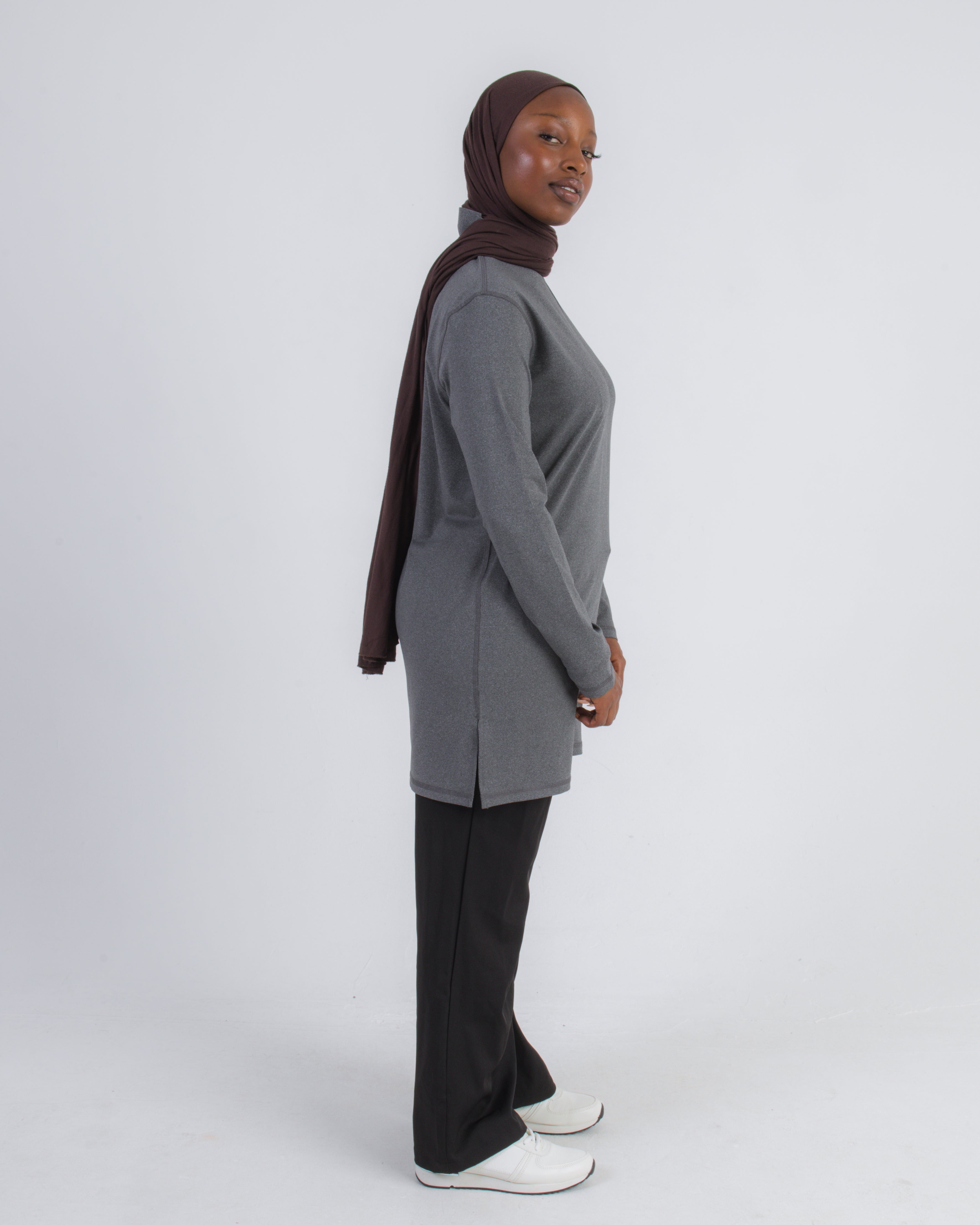 Introducing our Tailored Fit Top – the ultimate combination of elegance and functionality. This top offers medium-level coverage, strategically designed slits for a full range of movement, and the added benefit of neck coverage.