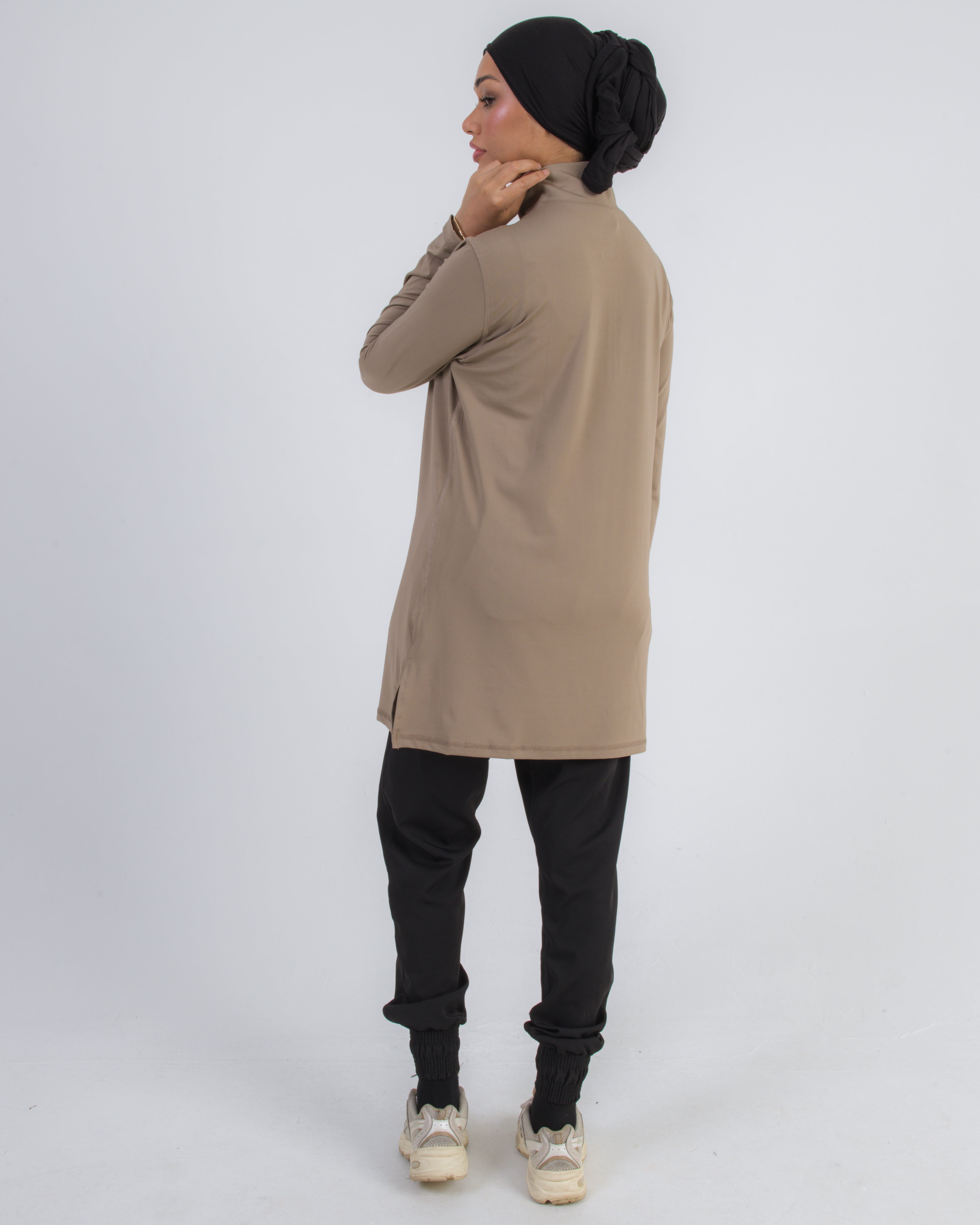 Introducing our Tailored Fit Top – the ultimate combination of elegance and functionality. This top offers medium-level coverage, strategically designed slits for a full range of movement, and the added benefit of neck coverage.